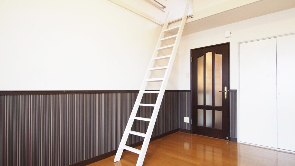 はしごを斜めに立てかけるタイプの物件では、はしごの設置部分の床面積が実質的に使えなくなります。家具を置きたくても置けない、動線の邪魔になる、という問題が出やすいです。